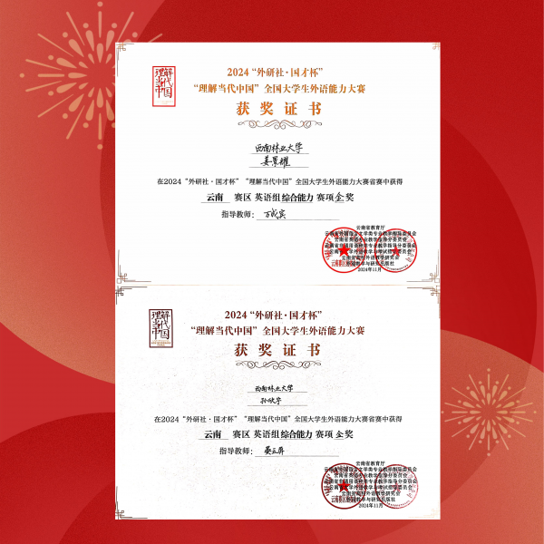 11月1日,2024年外研社•国才杯“理解当代中国”全国大学生外语能力大赛云南赛区英语演讲决赛暨颁奖典礼在米兰milan官方网站落幕。全省32所院校齐聚米兰milan官方网站,用英语讲述中国龙的精神,交流语言学习经验。省教育厅高等教育处负责人及云南外语界专家学者出席颁奖典礼。米兰milan官方网站副校长何霞红代表学校致辞。