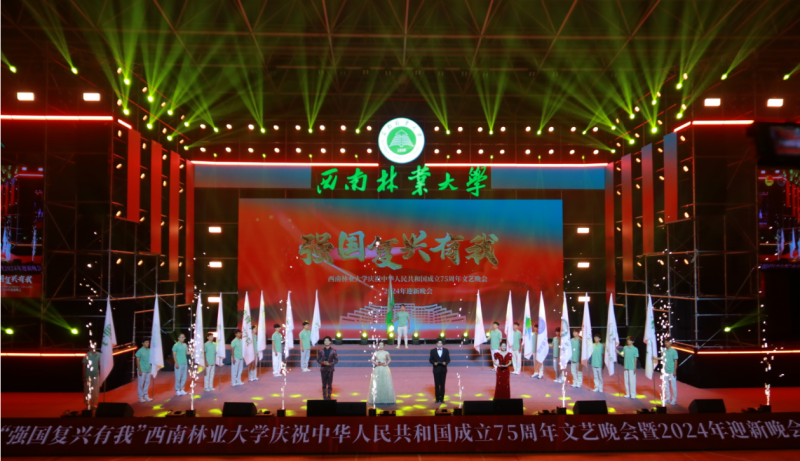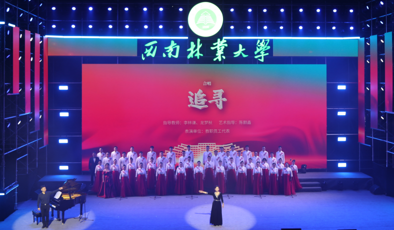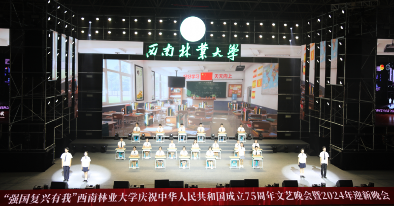 晚会以《林听西林》作为第一篇章拉开帷幕,倾情演绎原创歌曲《山林回响》、舞蹈《耕读筑梦》和情景剧《千山林涛》,深情回顾学校在办学历程中栉风沐雨、砥砺前行,为国家培养了一批批绿色人才,展现了一代代西林人坚韧不拔、锐意进取的创新精神以及对自然和谐与生态文明的使命担当。第二篇章《青春之歌》中的《像你这样的朋友》《民族团结一家亲》《精武腾龙》等节目,展现了当代西林学子的青春活力和对中国传统文化的继承发扬。第三篇章《挺膺担当》通过歌舞《万疆》、创意歌舞《稻香》和情景朗诵《强国复兴有我》,表达了西林附中和大学生艺术团对国家未来的担当与承诺。第四篇章《奋进强国》,以歌舞类《灯火里的中国》、合唱《追寻》和歌伴舞《领航》将晚会推向高潮。