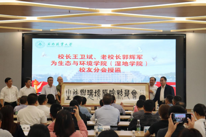 会上,嘉宾为校友分会授旗,为校友分会会长、执行会长、秘书长等新当选的分会班子成员颁发聘书。生态与环境学院(湿地学院)还举行了校友企业共建本科实训基地授牌仪式。