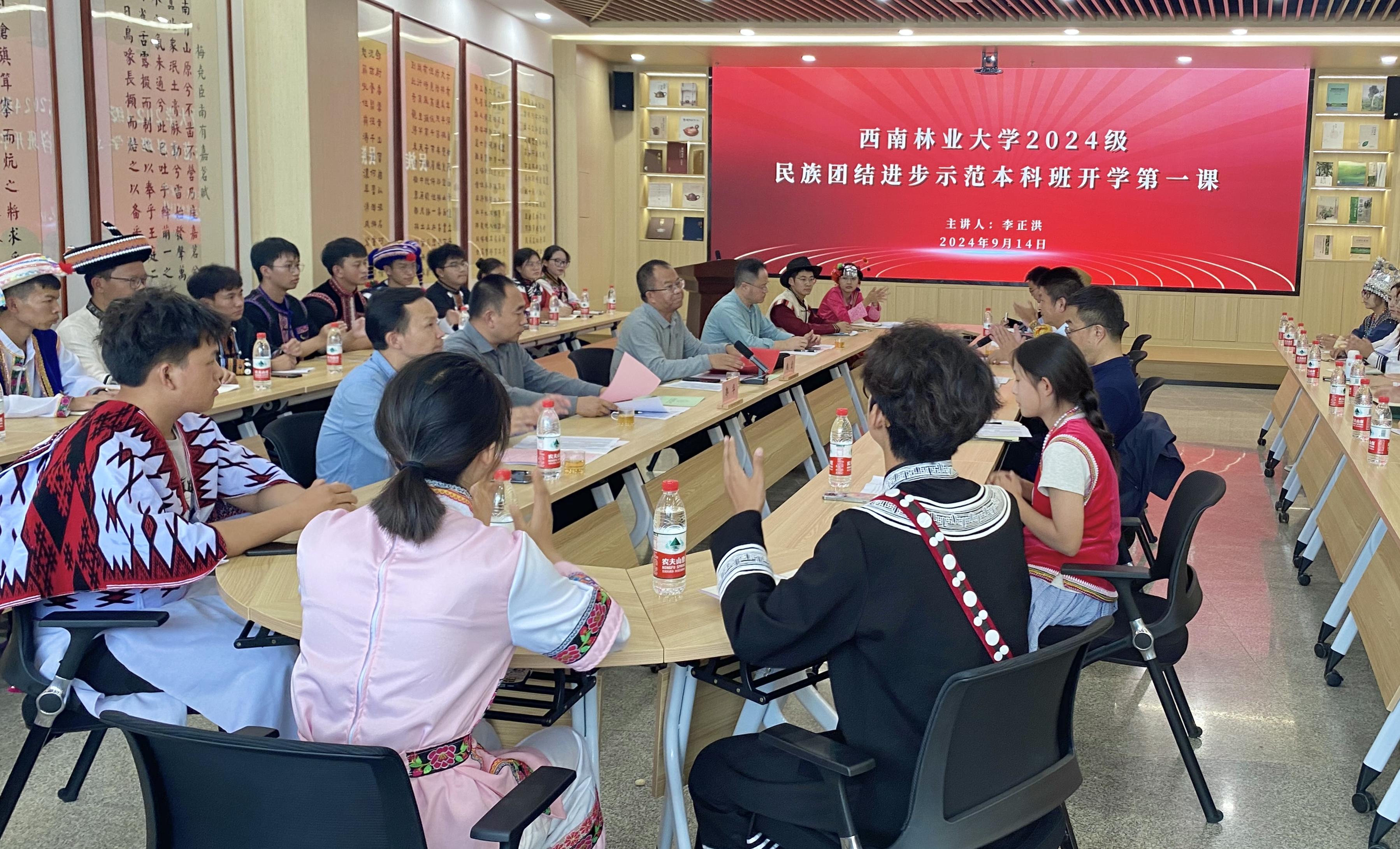 9月14日,米兰milan官方网站为2024级民族团结进步示范本科班讲授“开学第一课”。省民族宗教委党组成员、副主任李正洪,校党委副书记、铸牢中华民族共同体意识研究基地主任魏宏、副校长郭华,省民族宗教委教育处、米兰统战部、学生处负责人和2024级民族团结进步示范本科班全体同学参加活动。