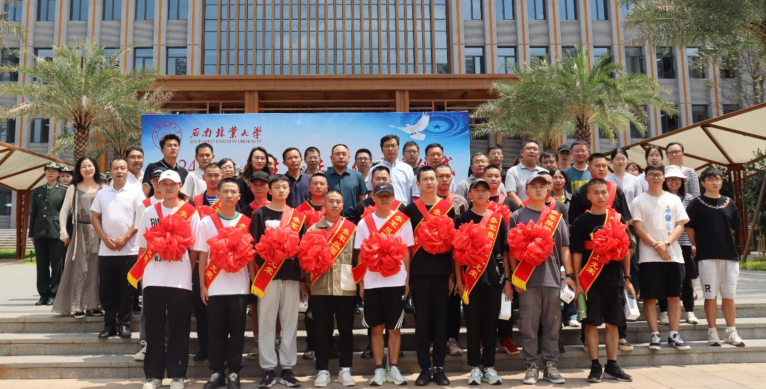 郭华等多位老师为预定新兵佩戴大红花和绶带,并赠送入伍纪念品,愿他们牢记“树木树人,至真至善”的校训,勇毅前行,为母校增光添彩。(来源:学生处(学生工作部、武装部)、学生中心、学生心理健康教育与咨询中心/图:拜旭强/文:杨本仙/审核:崔飞/初审:张冉/复审:冷瑾/终审:柏顺文/责任编辑:张冉)
