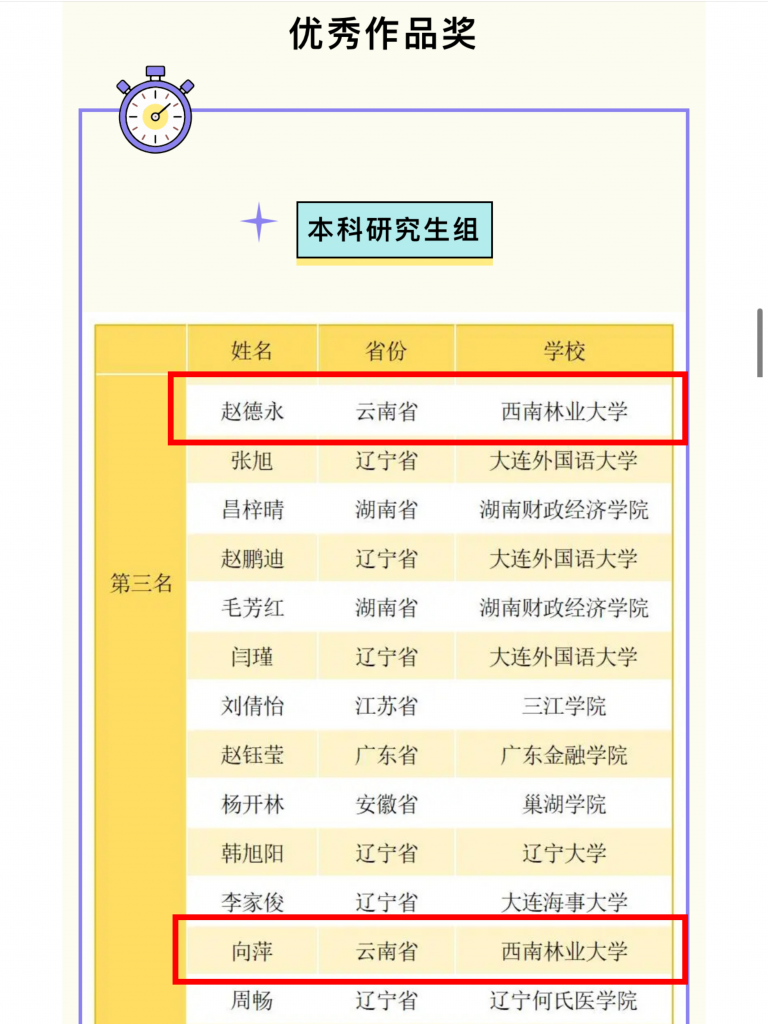近日,易班网公布“2024年第四届易班全国大学生简历设计大赛”获奖结果。米兰赵永德、向萍同学的参赛作品均获三等奖,王远老师获优秀指导教师奖,成为云南省唯一一所获奖高校。