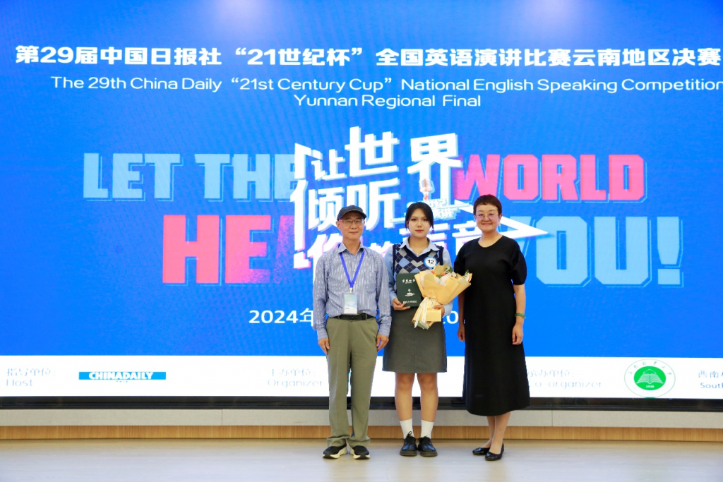 外国语学院(国际学院)院长何新元在大赛上致欢迎辞,寄语各位选手通过演讲发出时代之声,展现新时代中国青年的风采,讲好中国故事。中国日报云南记者站站长李映青作大赛总结发言,鼓励广大青年学子成为中国文化的国际传播者。