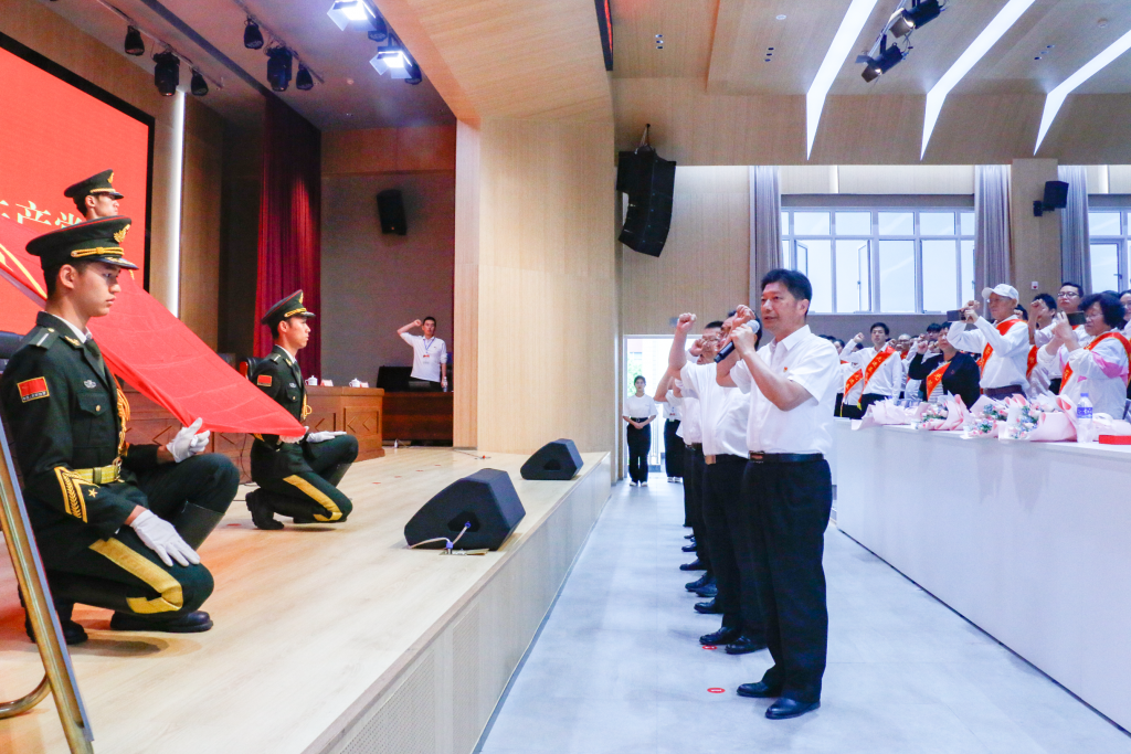 在校党委书记李永勤的带领下,全体党员面向党旗,重温入党誓词。