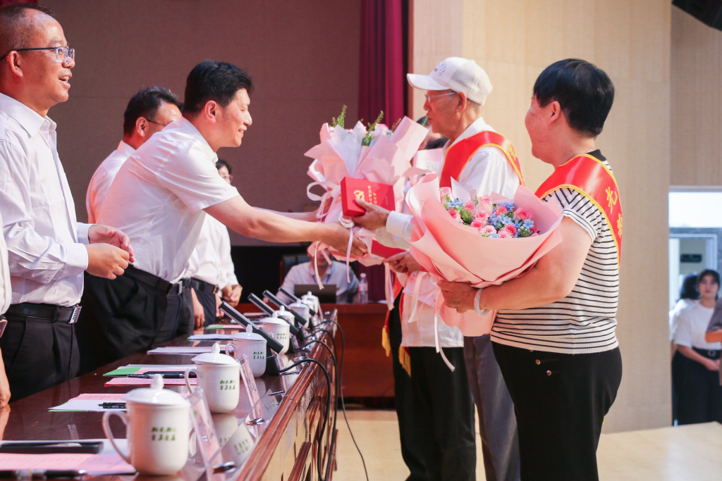 会上向老党员颁发“光荣在党50年”纪念章,向先进基层党组织颁发奖牌,表彰校级优秀共产党员、优秀党务工作者、服务乡村振兴模范党组织和优秀共产党员。