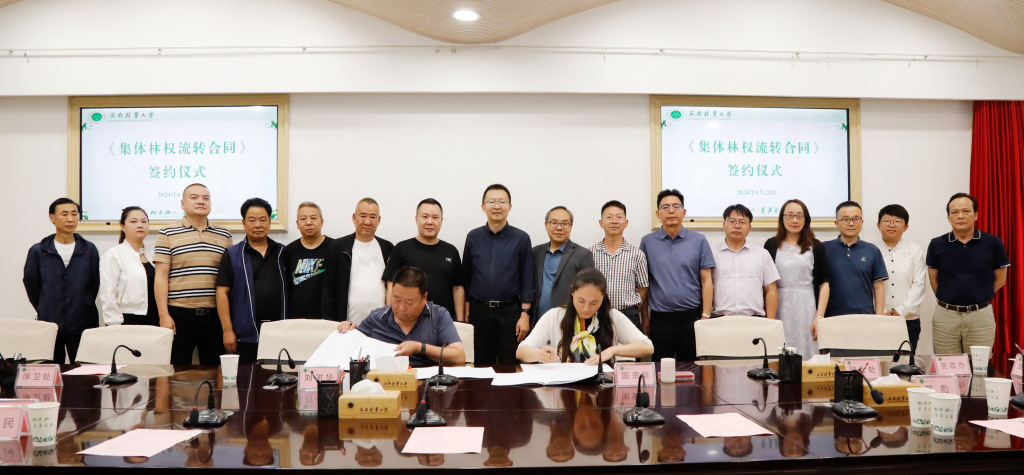 6月24日,米兰milan官方网站与昆明市盘龙区青云街道云山社区白龙寺村民小组签订集体林权流转合作协议,校党委副书记李君出席并主持签约仪式。