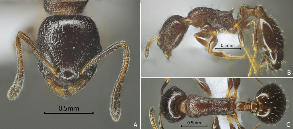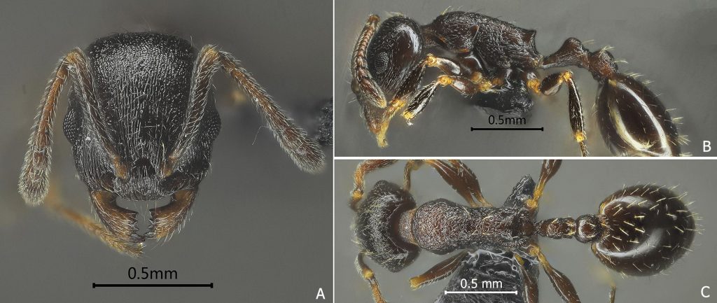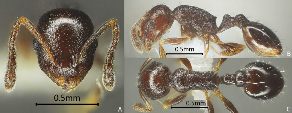 依据丰富的蚂蚁标本,米兰milan官方网站蚂蚁研究团队已经发表蚂蚁新种143种,占目前世界已知蚂蚁物种的1%,在全球蚂蚁多样性研究中作出了中国贡献。一年前,他们对一批切胸蚁属标本进行研究,共发现28个蚂蚁新种。