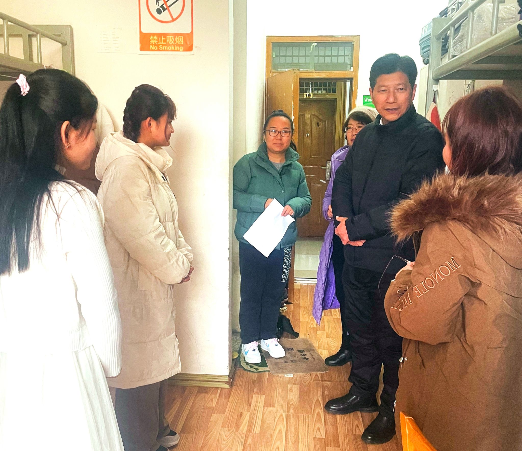 走访期间,李永勤详细了解在校过节留学生的学习生活情况,叮嘱同学们要注意防寒保暖,合理安排好日常作息,保持与家人和老师们的紧密联系,并为同学们送上美好的新春祝福。