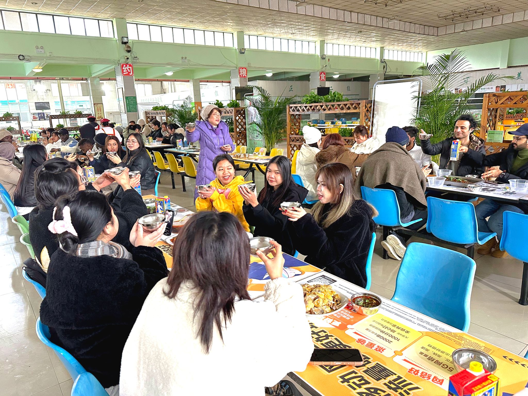 在除夕中午,学校邀请全体在校留学生共同参与“吃饺子,过大年”活动,后勤服务公司在学校食堂为留校学生们安排了丰盛美味的团圆“年饭”,学院组织中外同学们在西林大家庭中欢度新春佳节。