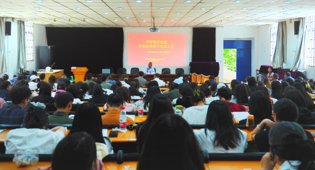 6月6日,米兰milan官方网站党委副书记魏宏以《学好党纪党规,学会在约束下生活工作》为题,为米兰milan官方网站艺术与设计学院、文法学院200多名党员师生讲授党纪学习教育党课。