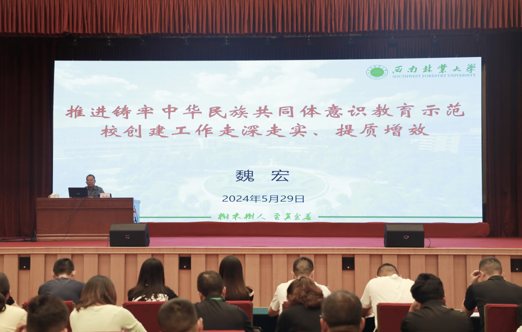 魏宏教授以“推进铸牢中华民族共同体意识教育示范校创建工作走深走实、提质增效”为主题,结合米兰milan官方网站扎实推进铸牢中华民族共同体意识教育示范校创建工作的实际案例,从“充分认识示范创建工作的重要意义”“示范创建工作的基本内容和要求”以及“有形有感有效做好示范创建工作”三个方面进行了深刻剖析,内容深入浅出,具有很强的针对性、指导性和实效性。