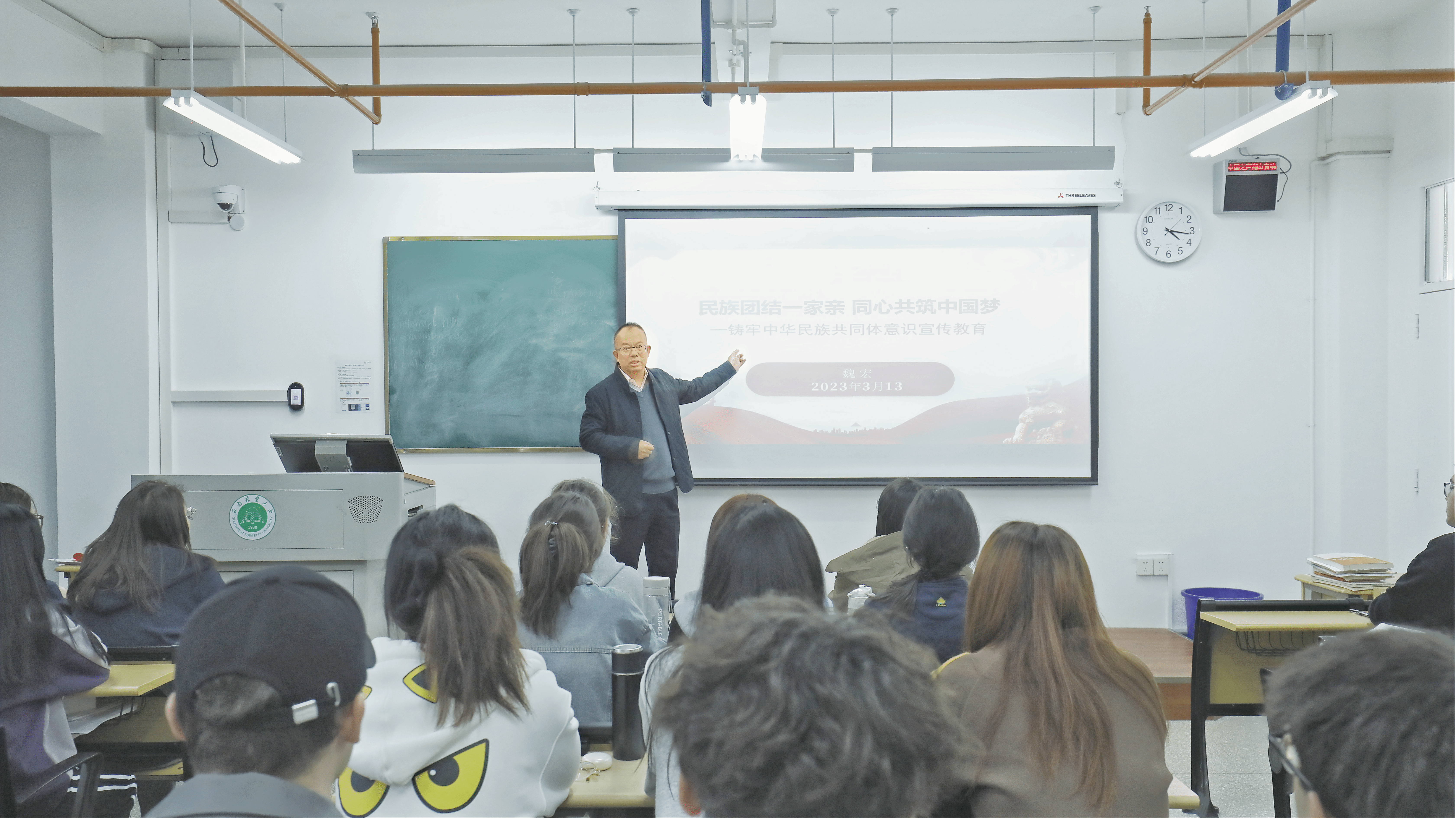 3月13日下午,校党委副书记魏宏走进学校民族预科班课堂,和同学们一起开展“民族团结一家亲·同心共筑中国梦”的铸牢中华民族共同体意识教育活动,以实际行动推进民族团结进步教育工作。
