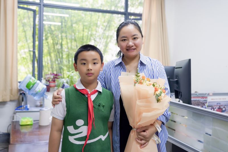“我给妈妈送一束花”活动中,来自西林附中的7名中小学生向在工作岗位上的父母送上了一束花,以花为媒,传递对父母的感激和爱意。
