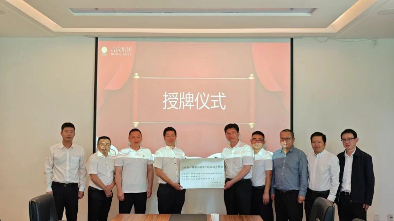 李永勤代表学校党委向云南吉成控股集团有限公司颁授云南省观赏草集成利用国际联合研发中心、云南省产教融合研究生联合培养基地、云南弥勒现代园林科技小院等牌匾。