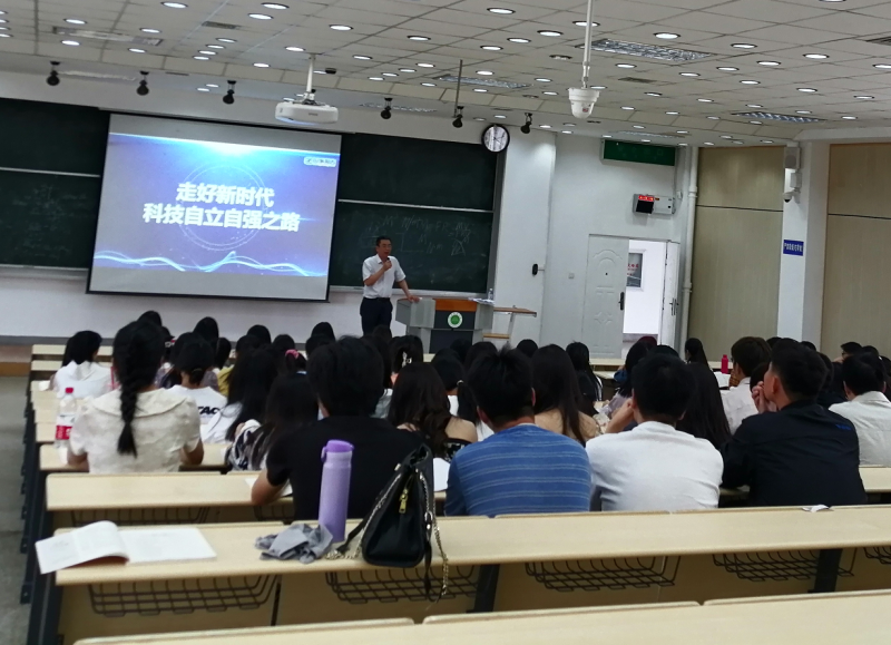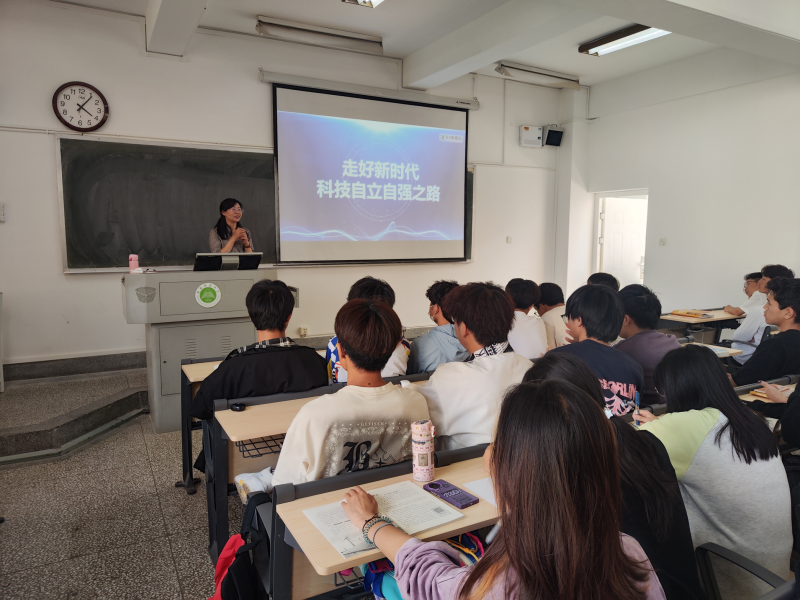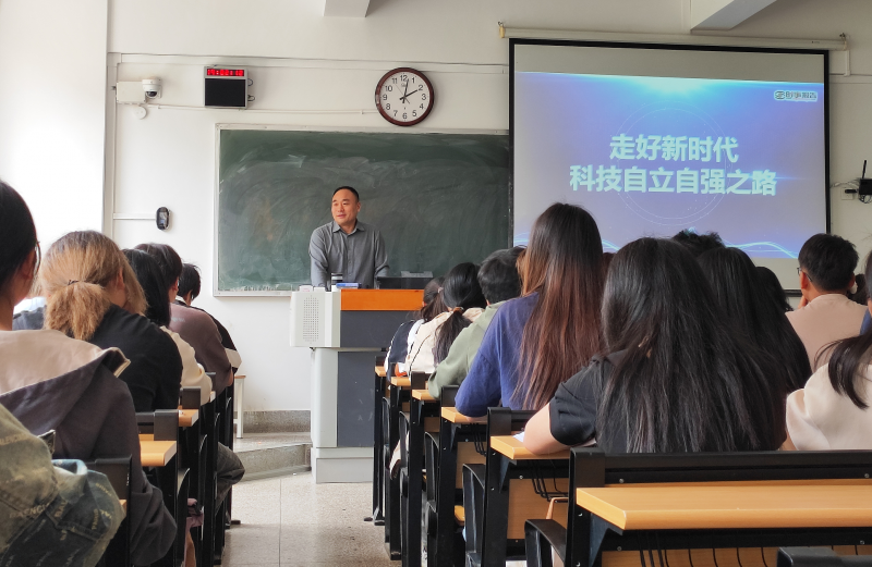 校党委委员、统战部部长王泾以《走好新时代科技自立自强之路》为题,阐释世界科技革命和产业变革的发展形势,讲述我国科技创新取得的历史性成就,勉励大学生爱国奉献、挺膺担当。