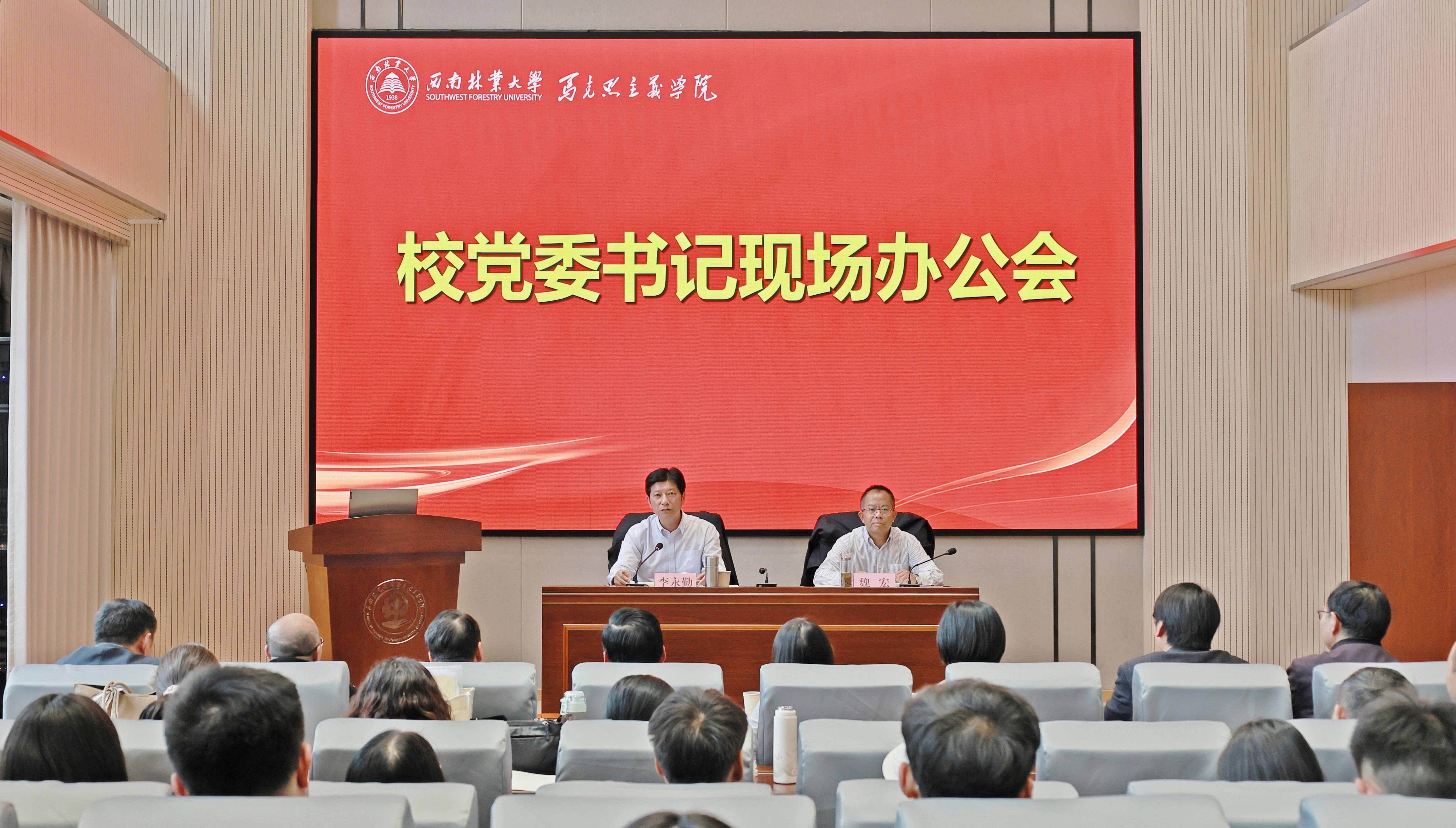 4月17日下午,校党委书记李永勤、副书记魏宏及相关部门负责人到马克思主义学院召开现场办公会,听取思政课集体备课情况汇报,并深入研究思政课建设工作。