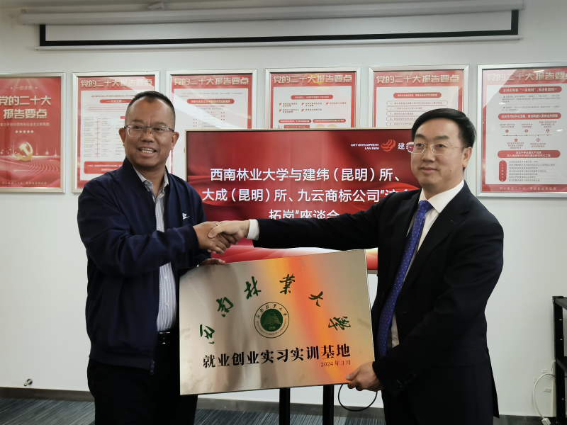 交流会后,魏宏代表学校授予建纬(昆明)律师事务所、云南九云商标事务所有限公司“就业创业实习实训基地”铭牌。