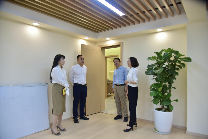 和缘玉一行实地考察米兰心理健康教育与咨询中心、心霖花苑种植基地、“一站式”学生社区功能室和智慧公寓系统运行等情况,并听取学生工作汇报。