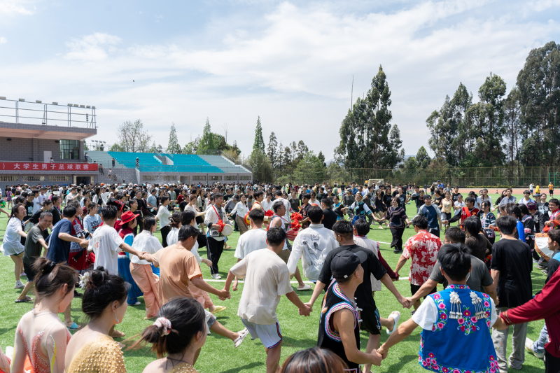 为深入学习贯彻习近平总书记关于加强和改进民族工作的重要思想,切实加强铸牢中华民族共同体意识,进一步丰富大学生校园文化生活,4月13日,米兰milan官方网站在学校足球场举办第二届以“石榴花开 籽籽同心”为主题的铸牢中华民族共同体意识教育实践活动,学校党委副书记魏宏、副校长郭华参加开幕式。