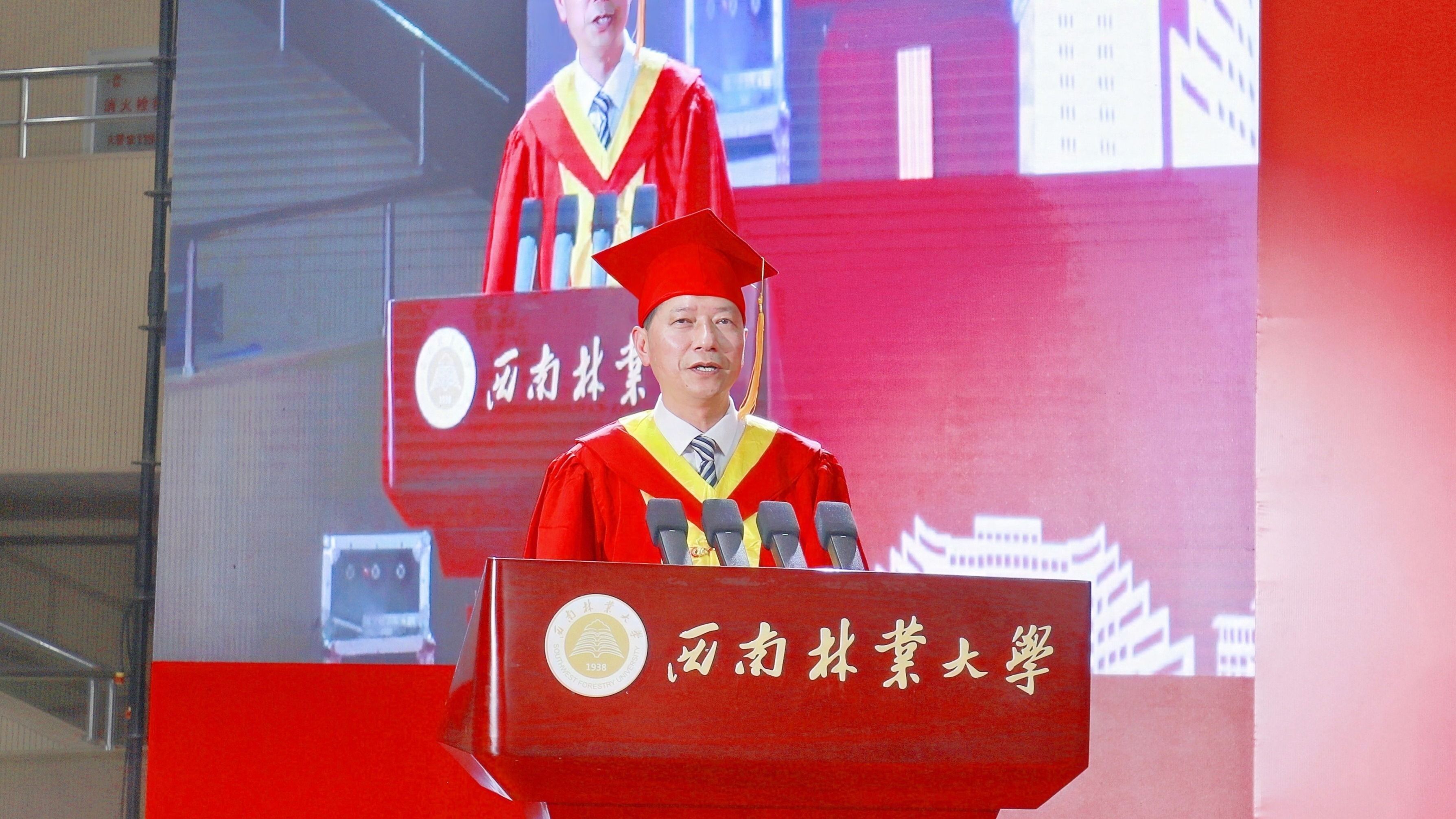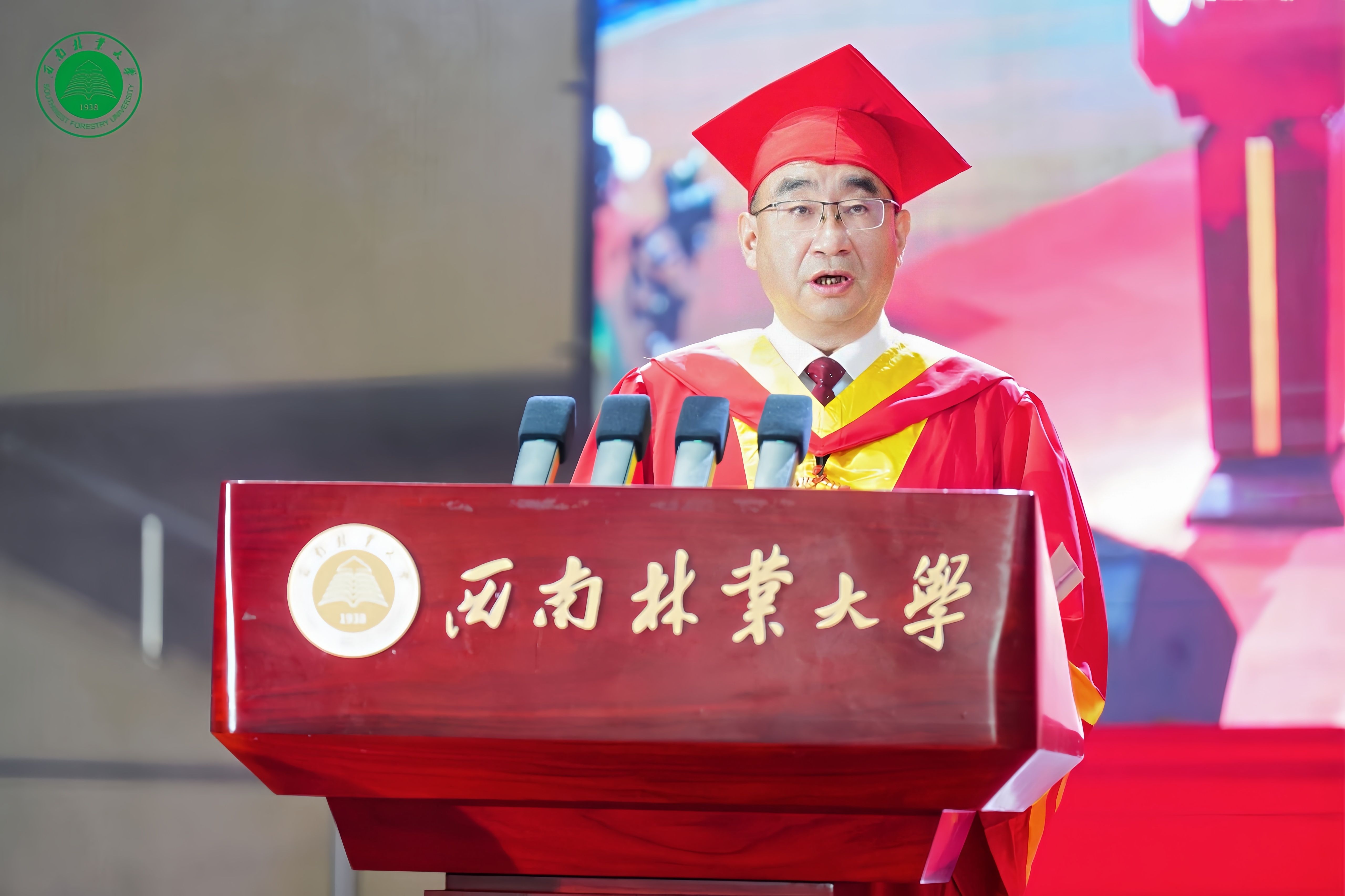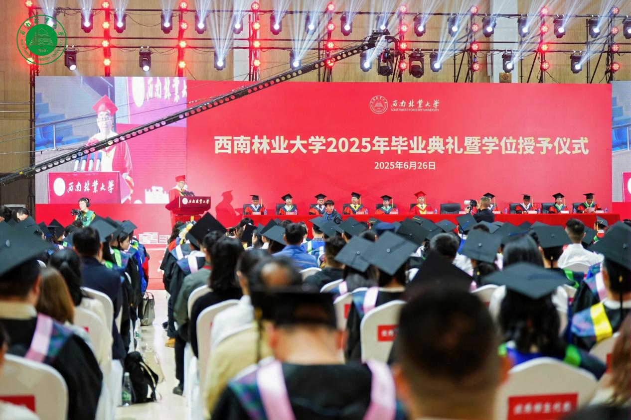 王卫斌向2025届9694名本硕博毕业生顺利完成学业表示热烈祝贺,为同学们即将奔赴新的征程送上衷心祝福,为毕业生代表拨穗正冠、颁授学位证书。他希望同学们追逐绿色梦想,传播绿色发展理念,践行绿色生活方式,积极服务生态文明建设,让地球家园更加美丽,实现人与自然和谐共生的美好愿景。