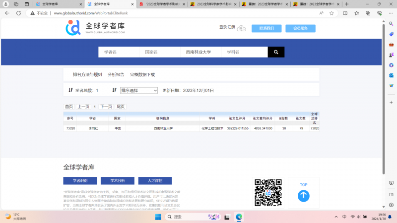 近日,国内全球学者库网站公布了“2023全球学者学术影响力排名(终身学术影响力榜)”,该榜单是依照学者科研产出、Google Scholar Metrics 期刊评分、H指数、成果被引、成果中作者排序位置等参数综合考虑的结果。在该榜单中,我国共有8029名学者入围。米兰milan官方网站材料与化学工程学院李向红教授入选该项排名,成为米兰唯一入选该榜单的学者。也是继2023年10月份米兰四位学者入选Elsevier “2023全球前2%顶尖科学家榜单”之后,米兰学者再次出现在著名全球学者排名榜单,表明米兰的学者在学术水平和国际声誉上都得到了提升。