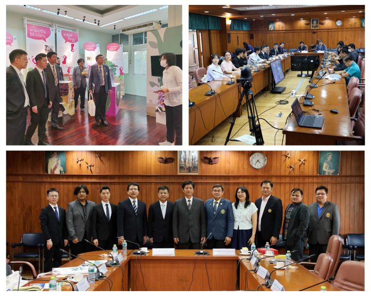在泰国农业大学,代表团与该校副校长南农·西帕拉(Damrong Sripraram)及有关学院负责人进行座谈,双方回顾了30余年的合作历程,深入交流了强化林学类学生交换、执行好国家留学基金管理委员会的乡村振兴人才培养项目、申办中外合作办学项目或机构、组织实施澜湄流域林业高校博士生奖学金项目等议题。南农·西帕拉对学校的快速发展和两校间的合作成果表示赞赏,希望双方能传承友好合作、共创美好未来。李永勤表示学校珍视与泰国农业大学的深厚传统友谊,希望双方继续拓展合作空间和领域,提升合作质量和层次,打造更多标志性成果,为推动构建中泰命运共同体贡献教育力量。代表团还实地走访了泰国农业大学林学院及标本馆,看望了学校在泰交流学习的硕士研究生。