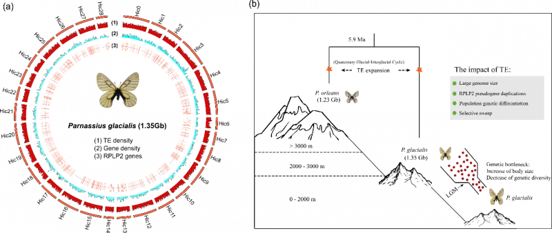 本研究主要基于一种高山蝴蝶(冰清绢蝶,Parnassius glacialis)的基因组测序以及群体重测序数据,利用生物信息学技术分析了冰清绢蝶“走出青藏高原”过程中的基因组进化和群体演化模式,并发现了转座子在驱动基因组大小变异、基因家族扩张、群体遗传分化以及本地适应中起着重要作用。赵友杰副教授开发了一系列比较基因组与群体遗传分析的生物信息学流程,并在多组学大数据挖掘中起到了关键作用,获得Nature系列编辑及评审专家的一致认可。论文的通讯作者为安徽师范大学郝家胜教授(赵友杰的博导)以及中国科学院南京古地质生物研究所杨群教授。同时,得到来自安徽师范大学、中科院南京古地质生物研究所、武汉大学、加拿大渥太华大学、山东农业大学、西北农林科技大学、米兰milan官方网站等众多专家和同行的支持与帮助。