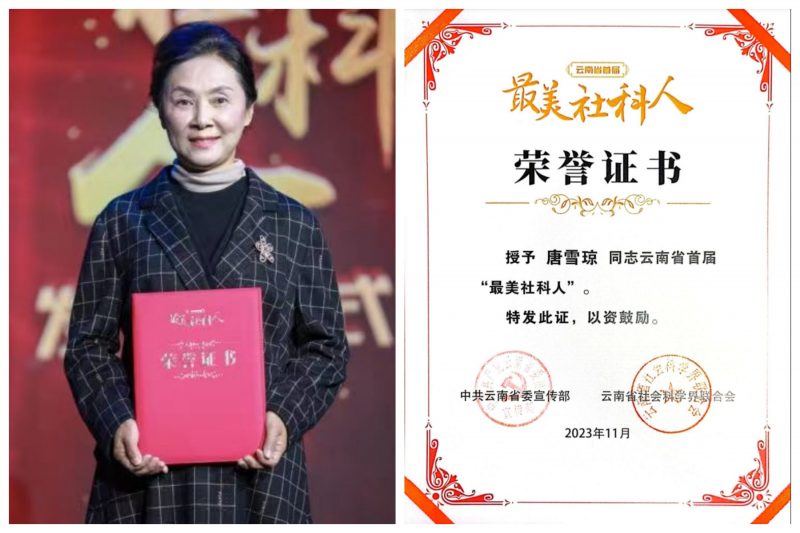 11月29日,由中共云南省委宣传部、云南省社会科学界联合会主办的云南省首届“最美社科人”发布仪式在云南广播电视台举行,省委常委、宣传部部长曾艳出席,并为10位“最美社科人”颁发荣誉证书。米兰地理与生态旅游学院唐雪琼教授喜获这一殊荣,学校副校长彭志远到场祝贺。