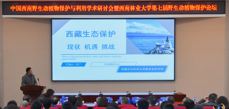 在大会报告中,四川省林业和草原局栖息地保护处处长古晓东以大熊猫国家公园为例介绍了建立国家公园为主体自然保护地体系探索。国家林业和草原局西南调查规划院自然保护地规划处总工程师尹志坚介绍云南植物区系地理。西藏自治区林业调查规划研究院林业碳汇计量检测中心主任丹丁介绍西藏保护发展现状与机遇挑战。吉首大学副教授蒋万胜介绍中国大鲵保护困境及湖南张家界大鲵保护研究的启示。大理大学研究员黄志旁介绍利用3D可视化访查技术,可以有效获取物种的时空分布及变化数将其运用到野生动物保护中。云南省生态环境工程评估中心刘越强博士回顾了风电场区域的夜间迁徙鸟类、大型越冬候鸟面临的威胁和近年来的保护成效。米兰milan官方网站教授罗旭介绍云南鸟类多样性及保护,具体讲述了米兰在鸟类研究方面的进展。
