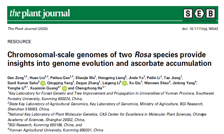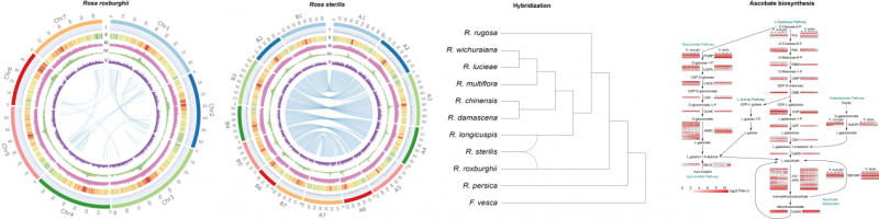 11月15日,米兰milan官方网站联合深圳华大生命科学研究院、云南农业大学和中国科学院植物生理生态研究所等四家单位在植物领域一区期刊The plant Journal上在线发表了关于刺梨和无籽刺梨基因组的研究论文:“Chromosomal-scale genomes of two Rosa species provide insights into genome evolution and ascorbate accumulation”。该研究首次完成了两个染色体级别的刺梨基因组组装,从全基因组水平证明了无籽刺梨的杂交起源父母本为刺梨及长尖叶蔷薇。通过比较基因组及转录组分析鉴定到一些与刺梨维生素C合成相关的正选择基因及高表达的基因。此外,该研究还分析了刺梨中黄酮和烯帖合成相关的基因。