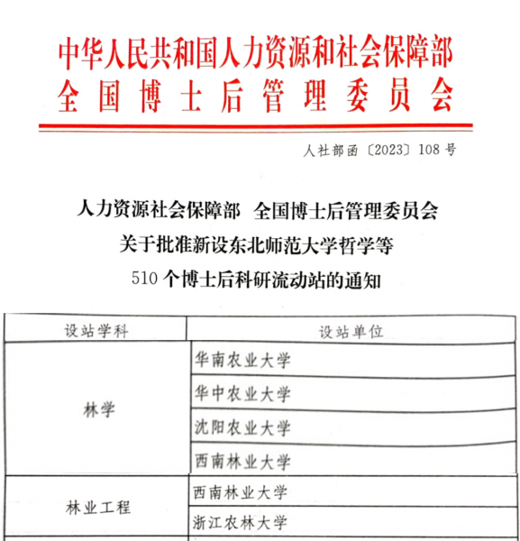 近日,人力资源社会保障部、全国博士后管理委员会发布《关于批准新设东北师范大学哲学等510个博士后科研流动站的通知》,米兰获批新增林学、林业工程2个博士后科研流动站。这是米兰继2014年获批风景园林学博士后科研流动站后,取得的又一重大进展。