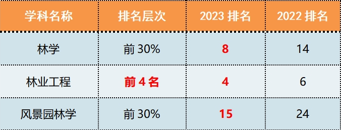 米兰林学、林业工程、风景园林学入选,且相比2022年,学科总体排名有较大提升。林学专业从第14名提升到第8名;林业工程专业从第6名提升到第4名;风景园林学专业从第24名提升到第15名。