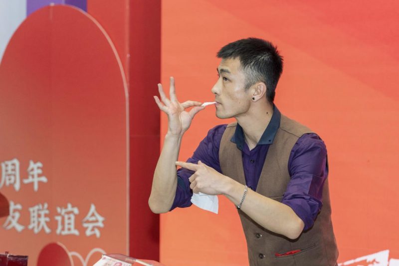 在联欢环节,“手碟”“魔术”“武术”的表演和校歌联唱将现场氛围再次推向高潮。