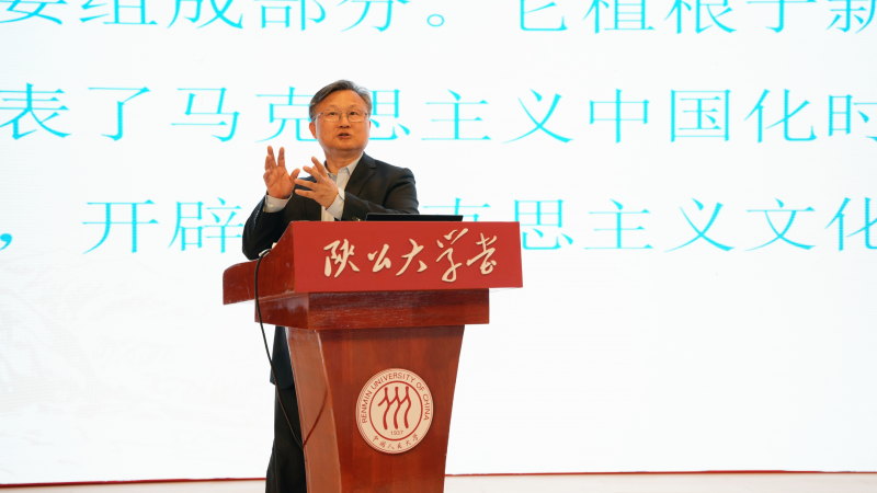 随后,“陕公大学堂”首讲活动开始。郝立新教授作题为《从“两个结合”看马克思主义之“行”》的主题讲座。郝立新教授通过精彩的讲座,为大家解读了马克思主义本土化的实践基础和文化维度、习近平文化思想及其重大创新等重要命题的丰富内涵,既有理论高度又有实践深度,既是一次生动的理论辅导,又是一次深入的思想动员。