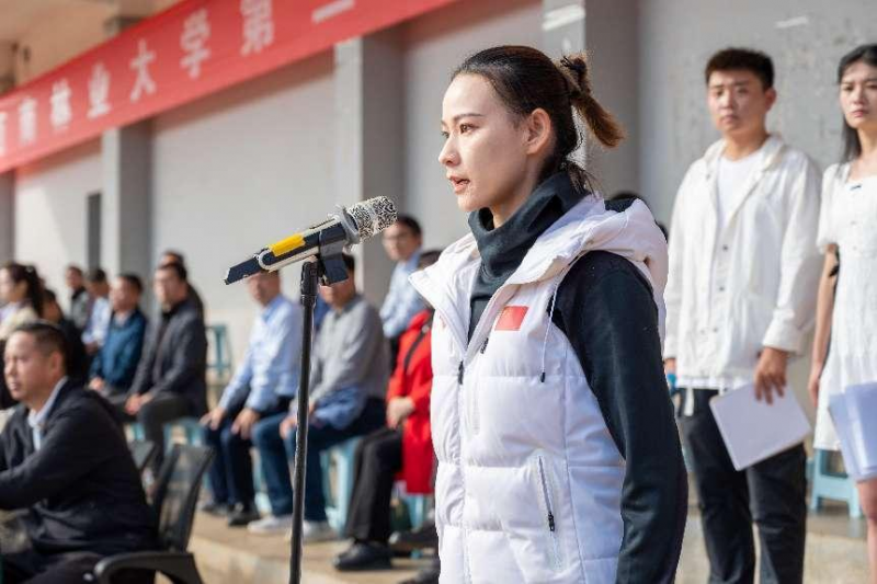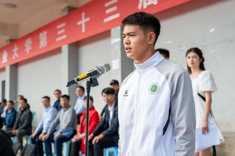 体育学院教师、国际级裁判段静和体育学院2021级学生、省运会冠军李祥壮,分别代表裁判员及运动员宣誓。