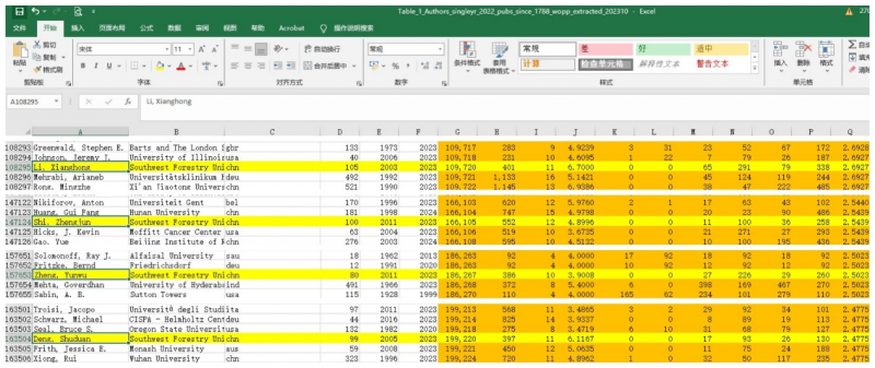 米兰李向红教授、史正军教授、郑云武高级实验师、邓书端教授入选”年度科学影响力排行榜”。李向红教授、邓书端教授还入选了“终身科学影响力排行榜”。