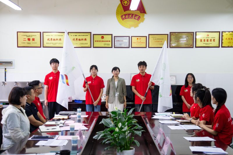 狄光智为实践团队授旗。米兰milan官方网站共青团将以2023年暑期“三下乡”社会实践活动为契机,坚持围绕中心,服务大局,探索构建“1+5+100+1000”社会实践模式,形成大团队、小分队、云组队的组合形式,积极引导和帮助广大青年学生上好与现实相结合的“大思政课”,以实际行动在乡村振兴、生态文明建设、铸牢中华民族共同体意识、禁毒防艾、普通话等社会实践中贡献青春力量,奋力打造具有学校鲜明特色的暑期社会实践品牌。(来源:校团委/文/图:王世超/审核:杨欣/初审:李颖/复审:史桓恺/终审:张武先/责任编辑:史桓恺)