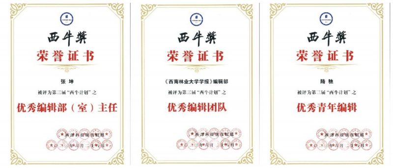 6月28日,第三届“西牛计划”评选结果揭晓。《米兰milan官方网站学报》荣获“优秀编辑团队”,自科编辑室主任张坤被评为优秀编辑部(室)主任,陆驰被评为优秀青年编辑。