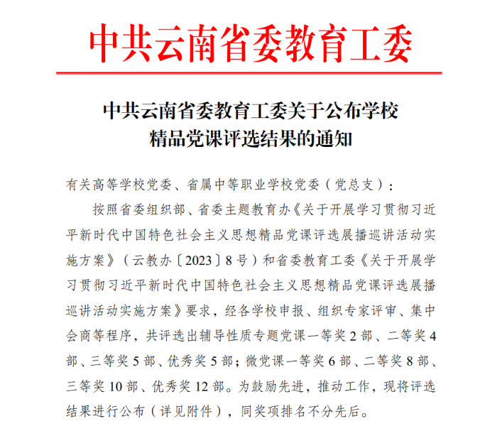 精品党课评选展播活动是省委组织部、省委主题教育办、省委教育工委为推动学习贯彻习近平新时代中国特色社会主义思想和党的二十大精神走深走实,以党员教育丰硕成果服务教育事业高质量发展的一项工作举措,学校相关部门按要求开展了广泛宣传和动员,组织了校内评审推荐。