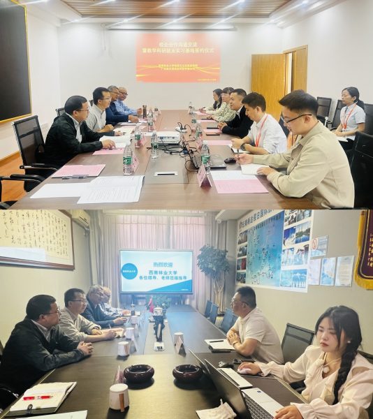 杨永发向各用人单位介绍学院基本情况、专业特色和学生就业情况。已在走访单位就业的同学在座谈会上进行工作交流。学院与两家公司达成合作意向并举行“教学科研就业实习基地”签约挂牌仪式。
