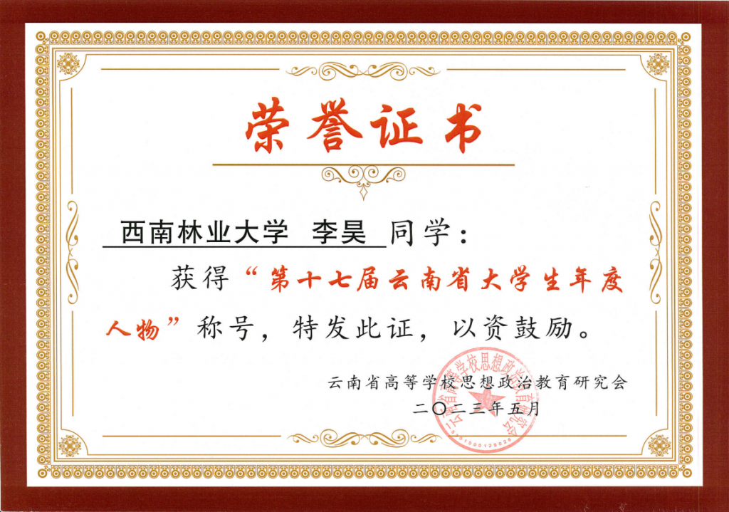 近日,云南省高等学校思想政治教育研究会公布第十七届云南省大学生年度人物评选结果,米兰机械与交通学院李昊同学被评为第十七届云南省大学生年度人物。