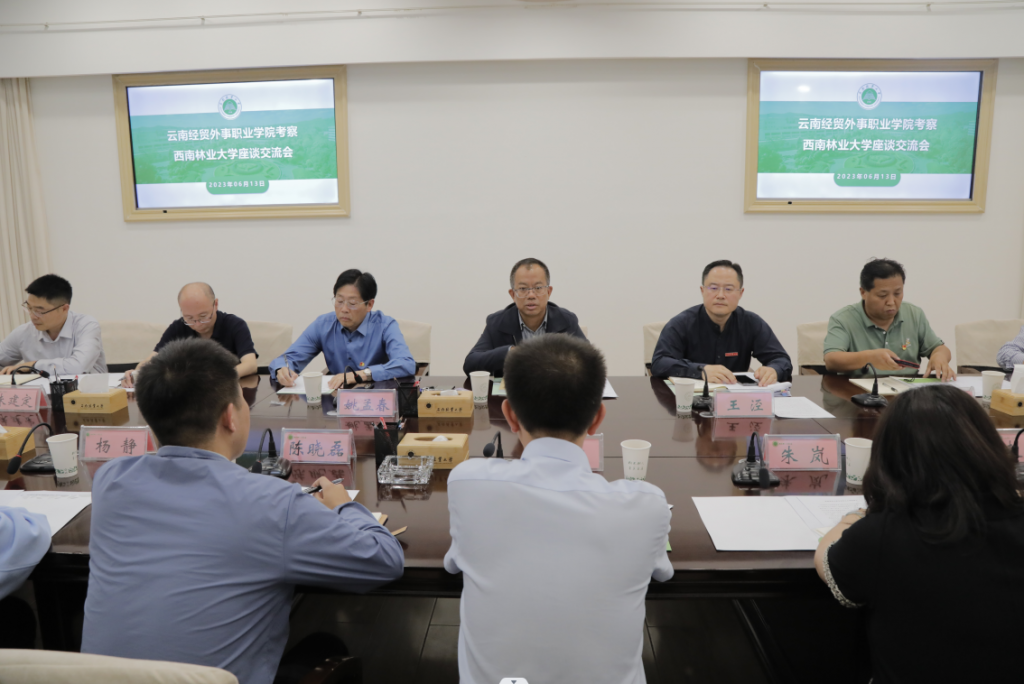 校党委副书记魏宏代表学校对云南经贸外事职业学院各位领导及老师的到来表示热烈欢迎,并介绍学校办学基本情况以及学习贯彻习近平新时代中国特色社会主义思想主题教育开展情况。杨飞介绍云南经贸外事职业学院基本情况,并就考察交流内容进行说明。随后,双方围绕铸牢中华民族共同体意识教育及思想政治理论课建设方面进行交流。