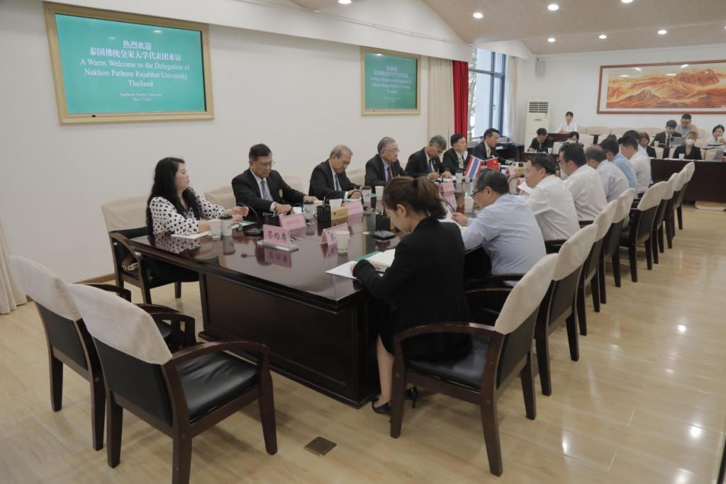 林学院、材料与化学工程学院、园林园艺学院、机械与交通学院、外国语学院、经济管理学院负责人与佛统皇家大学代表展开深入细致的交流,共同探讨了今后的合作意向。会后,代表团一行赴学校世界茶树原产地古茶树资源展参观。(来源:对外合作交流处/图:朱皓天/文:毛琬婕/审核:秦云帆/初审:李颖/复审:史桓恺/终审:张武先/责任编辑:史桓恺)