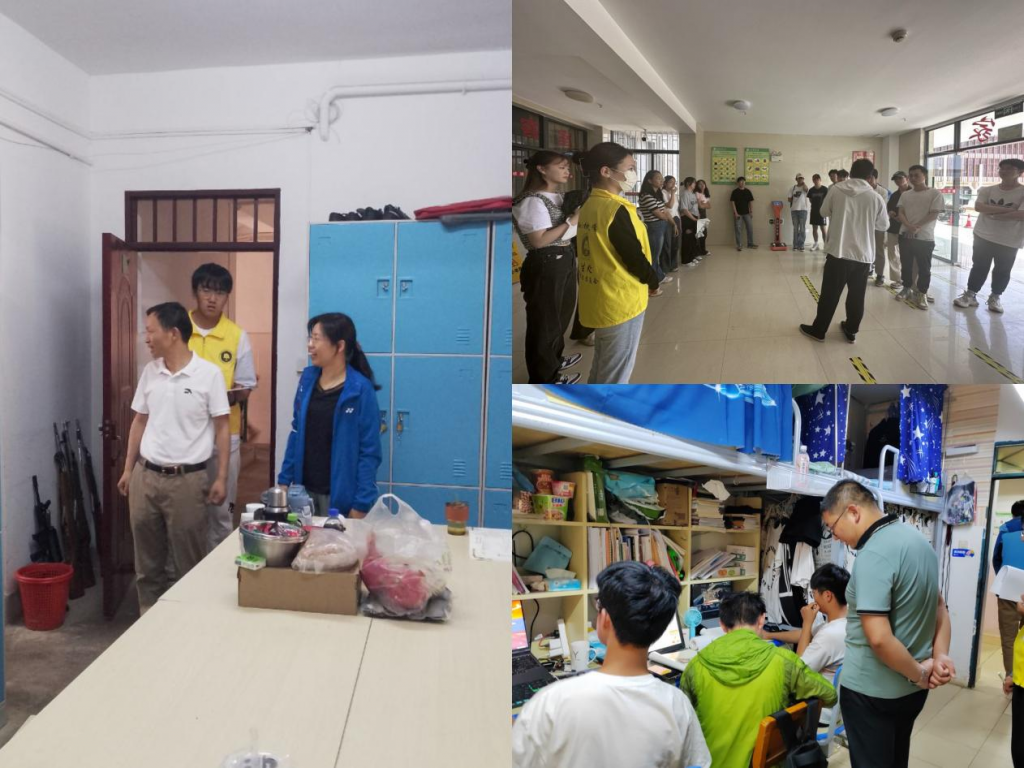 4月24日,副校长狄光智带队开展学校学生宿舍安全卫生专项整治行动。由学生处、保卫处全体工作人员、学院辅导员、学生自律委员会骨干组成的22个检查组,对全校22栋学生宿舍进行安全隐患排查整治,开展文明宿舍创建、防范电信诈骗知识宣传。