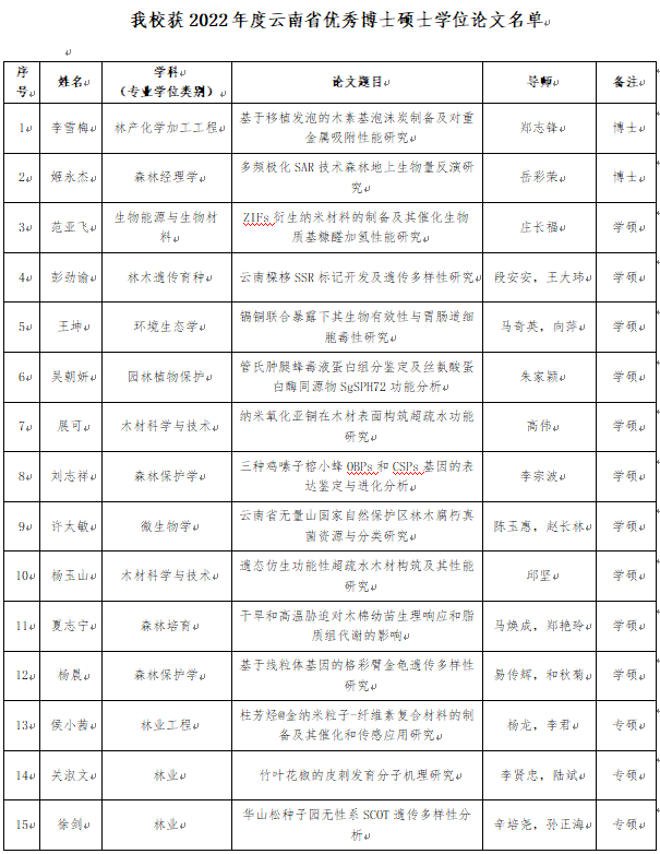 近日,云南省学位委员会、云南省教育厅公布了2022年度云南省优秀博士硕士学位论文评选结果,米兰获评优秀论文15篇,其中学术博士学位论文2篇,学术硕士学位论文10篇,专业硕士学位论文3篇。2022年度全省共评选优秀学术博士学位论文127篇、优秀专业博士学位论文1篇、优秀学术硕士学位论文158篇、优秀专业硕士学位论文165篇。(来源:研究生院/文:邱旭/审核:许纯梅/复审:李颖/责任编辑:史桓恺)