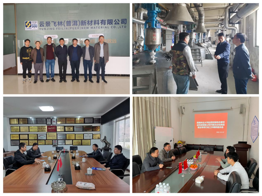 为加紧开展“春季促就业攻坚行动”,3月5日至7日,校党委副书记刘清江带队到普洱、西双版纳等地开展访企拓岗促就业行动。刘清江一行先后走访云景飞林(普洱)新材料有限公司、勐海雨林古茶坊茶叶有限责任公司、普洱市思茅区森盛林化有限责任公司、普洱科茂林华有限公司、云南天龙林产化工有限公司、西双版纳永耀农业科技有限公司等10家企业,拓展毕业生就业岗位100余个。