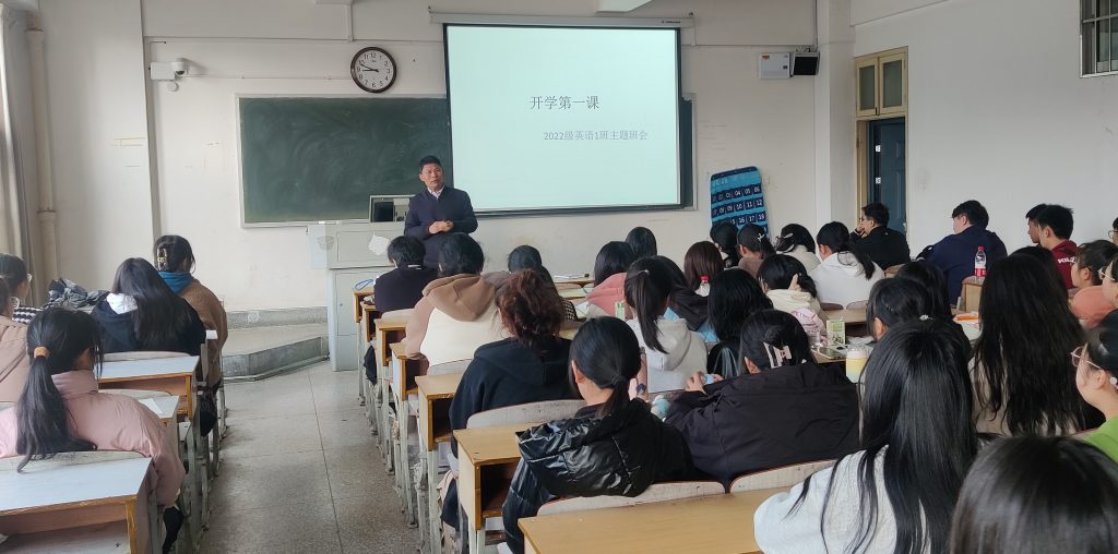 2月28日,校党委副书记刘清江践行一线工作法,深入外国语学院英语2022级1班开展开学第一课。