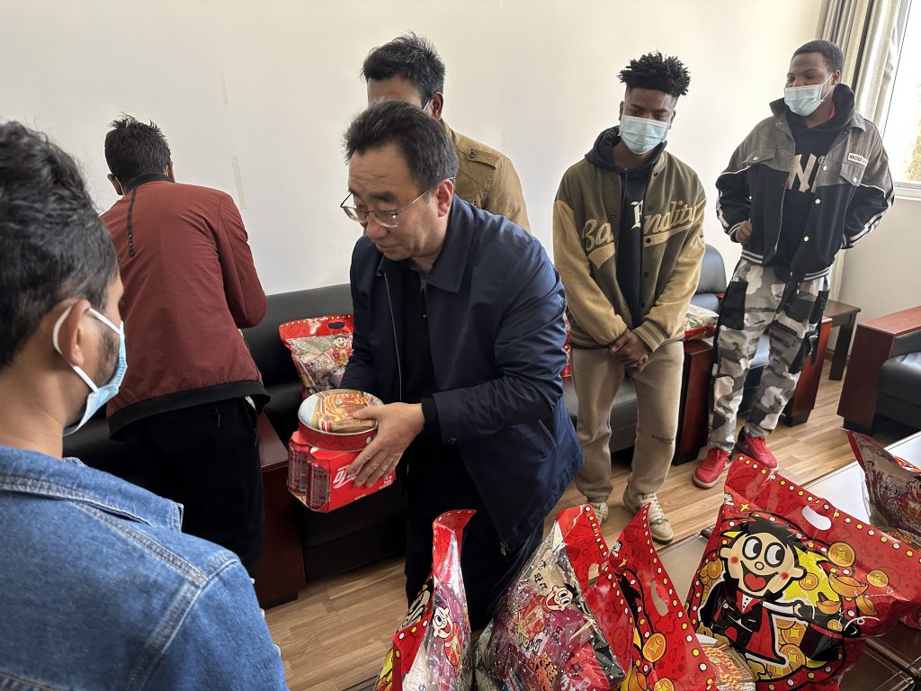 王卫斌鼓励留学生们认真学习,多了解中国文化,争取早日学成回国后为本国发展多出力,为增进本国和中国的友谊做出贡献。同时表示,同学们如有困难可以及时反馈给学校,学校将不遗余力帮助学生解决困难。在欢乐、融洽的氛围中,留学生们表示,虽然在异国他乡,不能回国和家人团聚,但学校领导带来的祝福和温暖让他们感到幸福和高兴,在新的一年里将勤奋学习,争做一名优秀的学生。职能部门负责人、国际学院教师代表参加了本次看望活动。