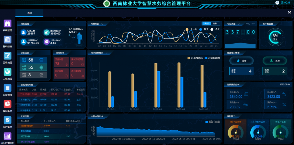 2.推进节水节能信息技术化。建立智慧水务综合管理平台,通过对供水用水实时在线监测、人均用水量分析、流量异常告警等功能,进一步实现了用水精细化管理,效果显著,真正实现了用水精细化管理。