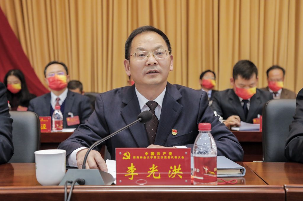 李光洪代表省委教育工委、省教育厅对大会的召开表示祝贺,向各位代表和全校师生员工致以诚挚的问候。李光洪在讲话中充分肯定了学校建设发展取得的成绩和育人成效,对全体党员代表提出牢记使命、议好报告、选好班子、树好形象等四个方面要求,对即将产生的学校新一届党委、纪委提出四个方面的希望和要求:一是要提高站位强化担当,坚决贯彻落实党的二十大重大决策部署。二是要培根铸魂、启智润心,坚决落实立德树人根本任务。三是要把握机遇,勇担使命,奋力推动学校高质量发展。四是要扛牢责任,筑牢防线,坚定不移推进全面从严治党。